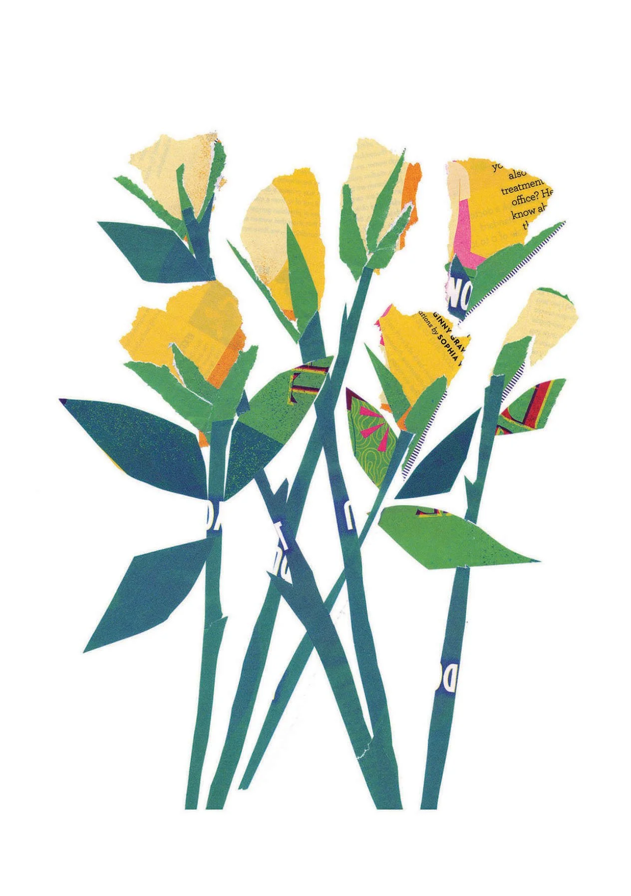 YELLOW ROSES©2025 Nurtured by Nature series.Torn paper collage.