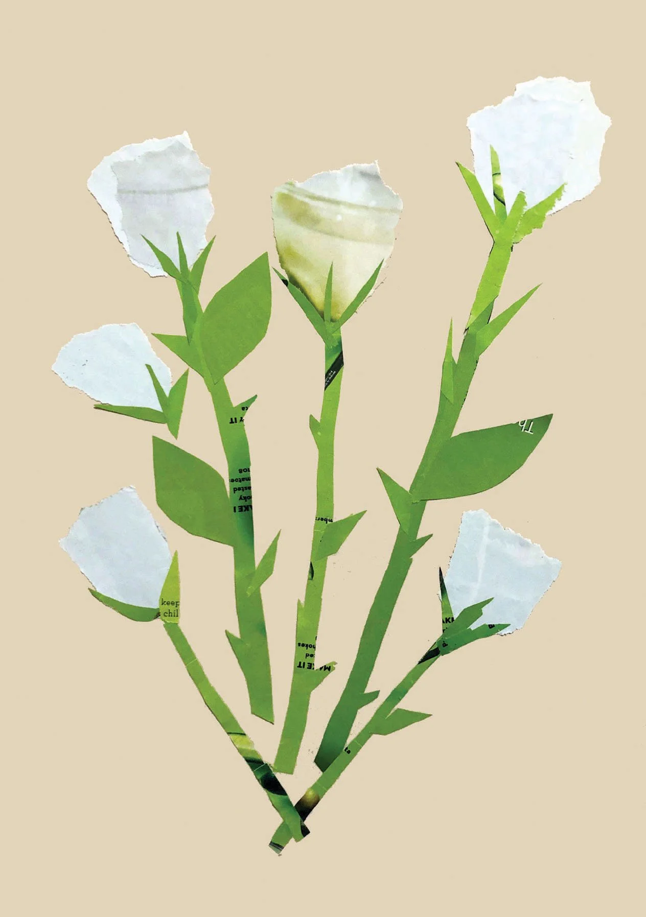 WHITE ROSES©2025 From my Nurtured by Nature series.Torn paper collage.